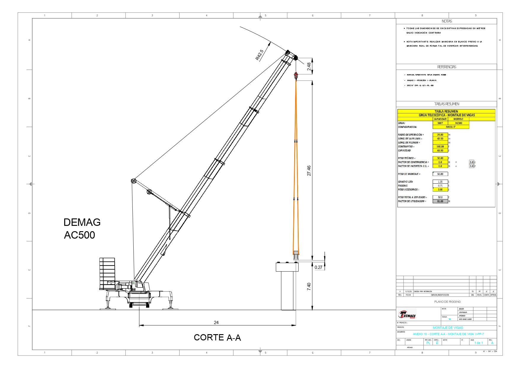 Año: 2024Capacidad: 250 TonLargo Pluma: 88 MtsPlumín: 17.5 Mts